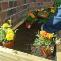 Heute haben wir die neuen Blumenbeete aufgestellt und mit einer kleinen Gruppe von Kindern neu bepflanzt.